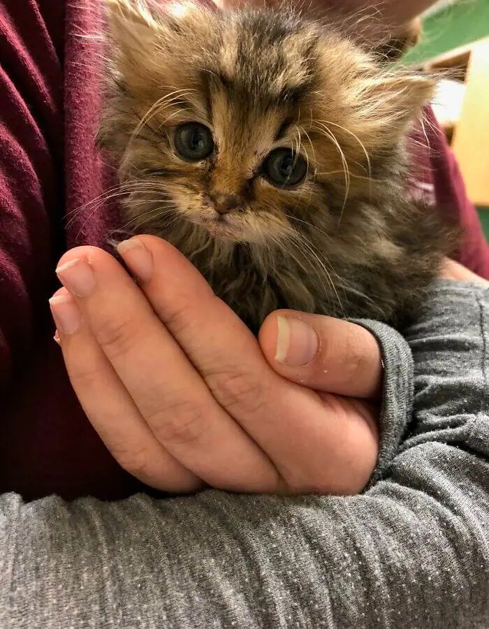 #9 This floof was abandoned and without food or water when she was found three weeks ago. This is her excitement moments ago on the way to her forever home!