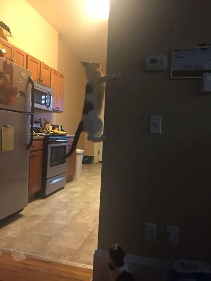 We can measure how far cats can jump, examine how long they can live, but we can never set the limit for their weirdness. They can act more dramatically than Oscar actors, sleep longer than polar bears and hide in the narrowest corner of the house. There is also an unusual, yet magical power that cats possess, that is their ability to disobey the law of physics. There are proofs of them canceling gravity, floating in the air, liquidfying, or even performing the Spider-Man infamous swinging from walls to walls tricks,… you name it. Cats are majestic creatures who can actually save the Earth if gravity collapses one day. Let’s see it for ourselves down below, don’t forget to upvote your favorite gravity opposers!