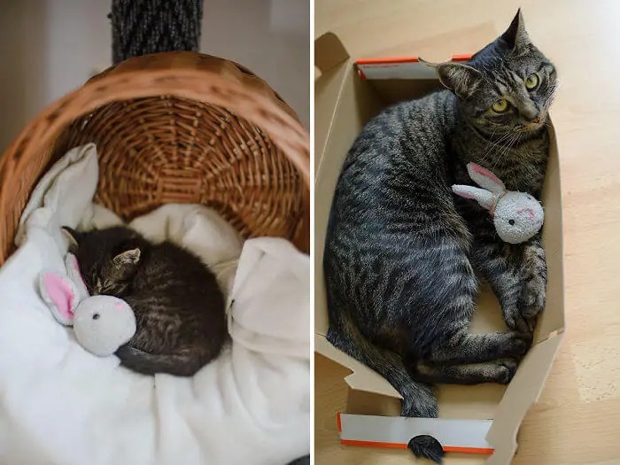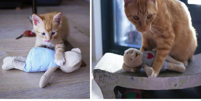 #7 The Difference A Year And A Half Makes, For Both My Cat And His Toy Monkey