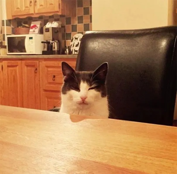 #15 I Kicked Over My Cats Milk And Had No Replacement. He Sat Opposite Me As I Ate My Dinner Looking At Me Like This
