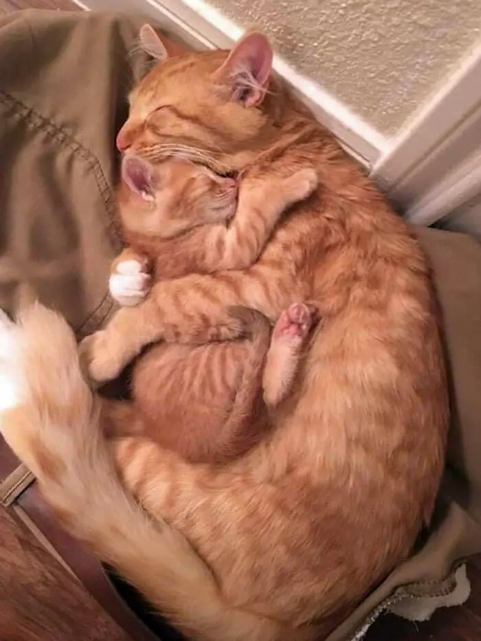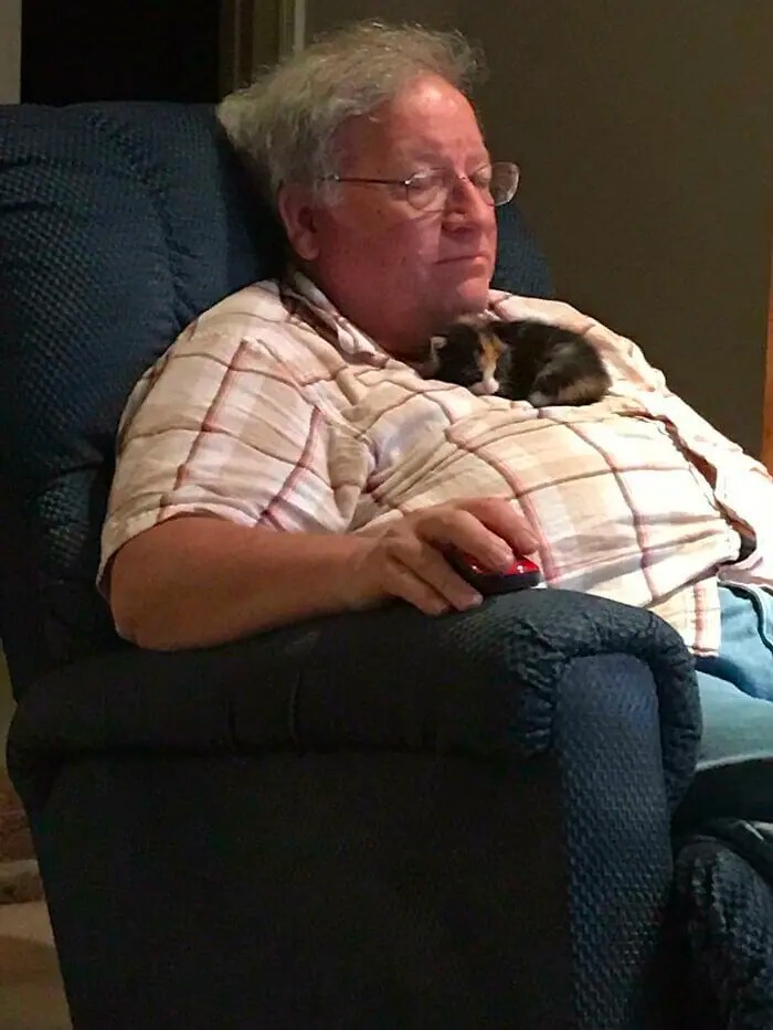 #26 My Dad Has Never Had A Cat But Loves Mine. He Found A Kitten Crying Outside A Couple Days Ago Who Prefers Sleeping Like This