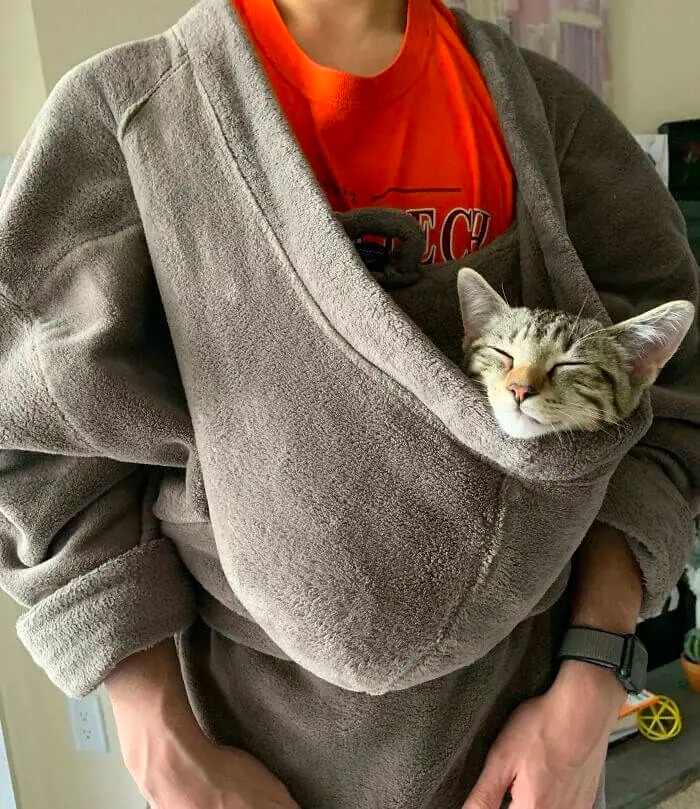 #33 I Was Playing Some Games On My PC, He Jumped On Me And Slid Into My Hoodie Before Taking A Nap. I’m In Heaven
