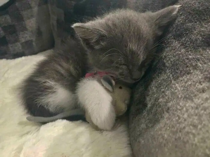#43 The Kitten We Rescued. Meet Luna, Sleeping With Her Toy Mouse