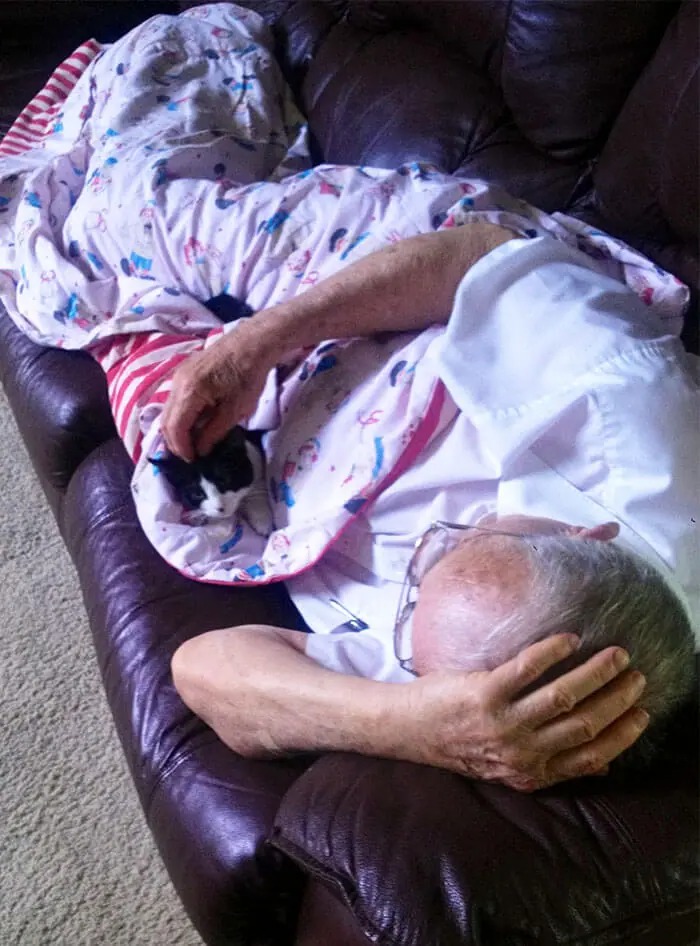 #19 14 Years Ago My Sister And I Got A Kitten For Our Dad Who Had Always Said He Hated Cats. They’ve Been Inseparable Ever Since