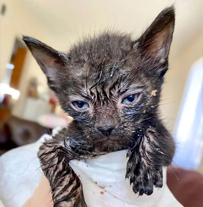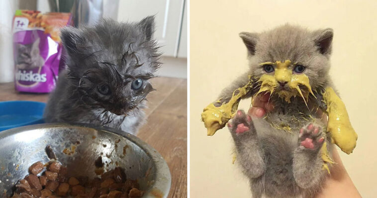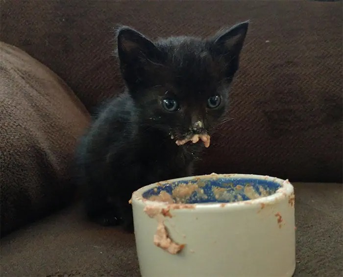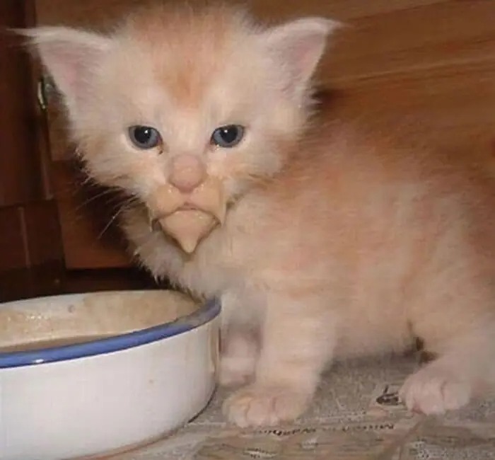 #31 Our Kitten Used To Put His Whole Face Into His Food