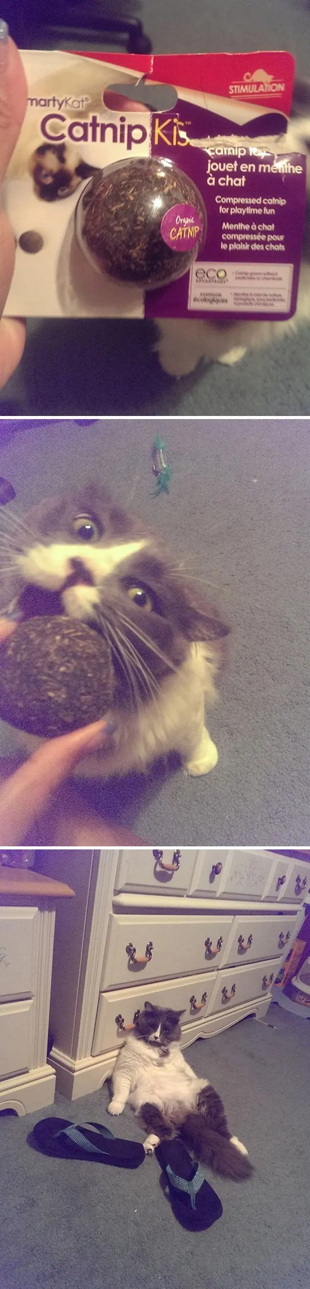 Social media users have uploaded these 30+ coolest pictures to show their furball becomes an uncontrollable weirdo when they smell, eat, and sway with a drug friend catnip. Some cats are completely derp, while others are wild and hyperactive.
