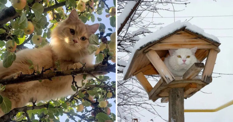 Cats climb tables, cabinets, and even trees, too. Whether it’s a kitten finding its way to grip its claw to a tree trunk or a full-grown chilling and loafing 20 feet from the ground, we can’t help but admire their incredible skills. In fact, their climbing skills are so good that their ancestors might be birds, so they might inherit those bird-like abilities, or maybe they were secretly raised by birds. The myth remained unsolved, but here are some pieces of evidence that cats might be birds in disguise.