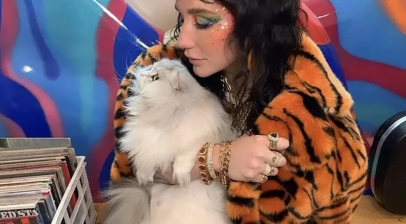 Kesha is a true cat lady. She has adopted 5 cats over the year. One of her babies Mr. Peeps starred in various of her music videos. Her most recent fluffer is Carl.