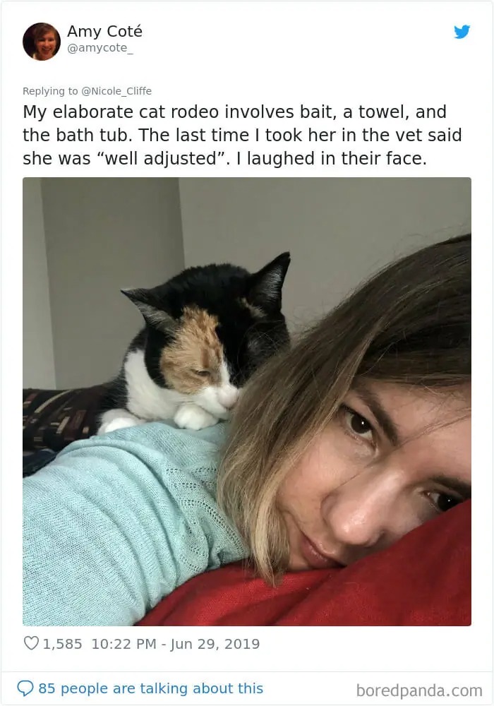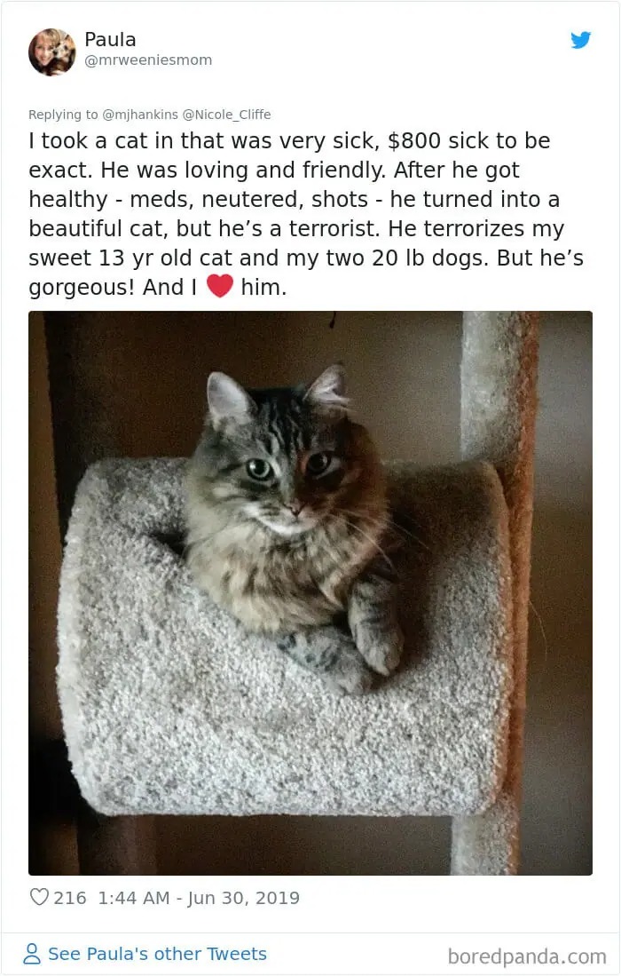 But take it easy, your feline might be mean, at least they still know who they belong to. If you just can’t stand of your mean cat, remember that you’re not alone, 30+ cat owners below are in the same situation. Get your tissue and scroll down to guffaw, they are relatedly funny and so true!