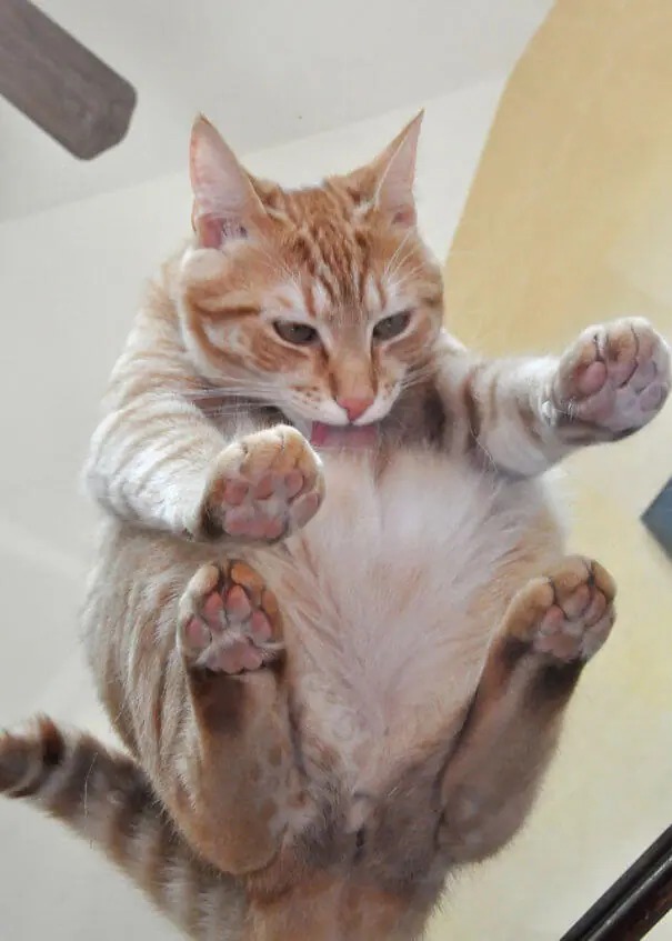 Cats are undeniably cute in every position and angle, even when their pictures are snapped from…below. The Internet is crazy over their adorable photos on a glass table, where their usually-not-seen body parts are shown clearly, like paws or belly. We have assembled a list of photos filled with these majestic furballs lounging on a glass table. From the classic loaf to the furry belly, and some hineys too, whatever pose they are doing, they are equally sweet and make you wanna squish right away! Scroll down to check them out and upvote your favorite felines!