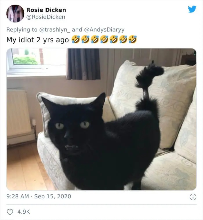 The best part was the replies from her tweet. Other owners who had cats in similar situations also began to respond with their photos. From taking off your pants to revealing a deformed belly, most shots are not flattering enough. There’s a hunch of our gut feelings that the cat is already brewing a revenge plan to retaliate against those who spread their photos. Let’s take a look of 30 hilarious pics below and ask your kitty for rating their fellas!