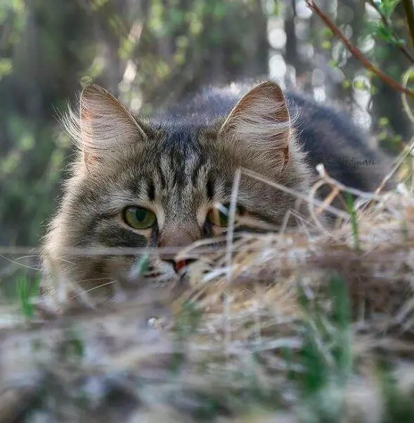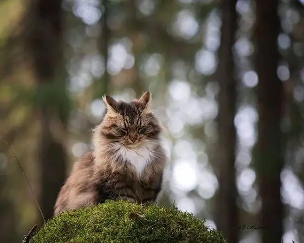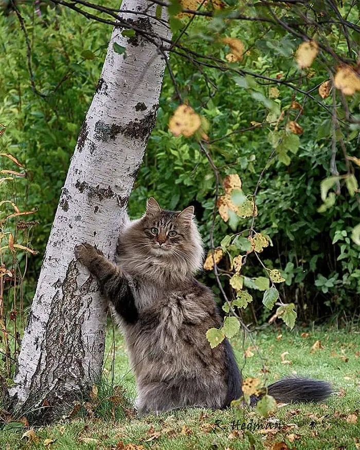 “Sämpy is a 6-year-old domestic cat and isn’t a special breed, although he looks liRiikka won the 2014 ”Photographer of the year” title in a Finnish photographer magazine’s competition and was overjoyed when she got a ‘super-fast camera for being 1st place. “I was practicing shooting with my new camera and got a great jump shot of Sämpy. I sent the picture to a local newspaper and it became so popular that a journalist was sent to make an article about the cat. When the article came out, Sämpy’s owner mused that the popularity of the social media accounts is most likely linked to the fact that she usually photographs her cats outdoors, ‘in beautiful surroundings, in funny situations, and without forcing them to do anything: “I think that in a good cat picture the cat needs to be natural and do its own cat things.” I got many wishes that the cat would have his own Facebook page. After Facebook, I created an Instagram account for Sämpy.”e a Norwegian Forest Cat. Elmeri, the gray cat, is 11 and he is also a domestic cat. Hiski, the biggest tabby without white paws, is a half-Norwegian Forest cat and is 2 years old. They all are neutered male cats. On my sites, there are also pictures of a gray-white cat, Nelli, but she passed away earlier this year,” Riikka explained.
