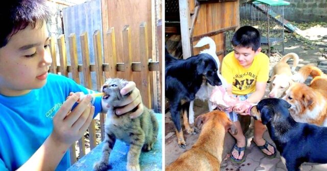 So when he started going to school, he got into the habit of feeding and petting local homeless animals.