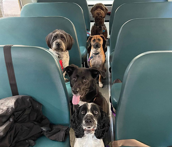 School is in session. The pupils are excited and a bit nervous. What will the day look like? Who will they get to play with? What’s coming for lunch? Will they get a big juicy bone or wet food? Oh, this isn’t a regular school that I’m speaking about. It’s a place where dogs come to stay when their owners are busy doing adult things. And to make things even better – they get picked up in the most adorable ‘school bus’ ever!