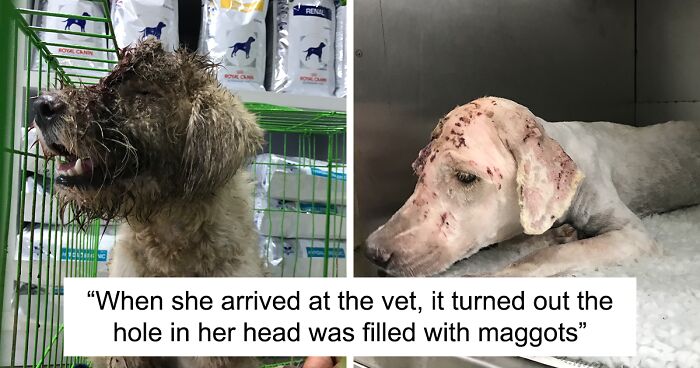 When she finally arrived at the vet, it turned out the hole in her head was filled with maggots. Perhaps it had been inflicted by a person, or she had been in a fight with another dog—we didn’t know. All we knew was that she needed help.