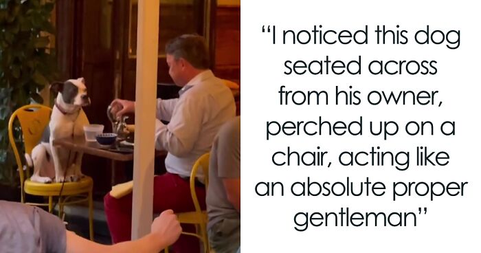 “I was presented with one of the most unexpectedly heartwarming views,” Gemma told The Dodo. “I noticed this dog seated across from his owner, perched up on a chair, acting like an absolute proper gentleman.”