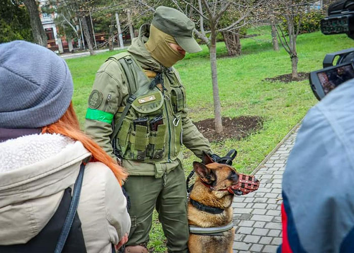 He noted that the dog was trained in searching for weapons, ammunition and detention, and was ready for combat. So far, the dog executed commands only in Russian, but he’s quickly learning to respond to Ukrainian commands as well.
