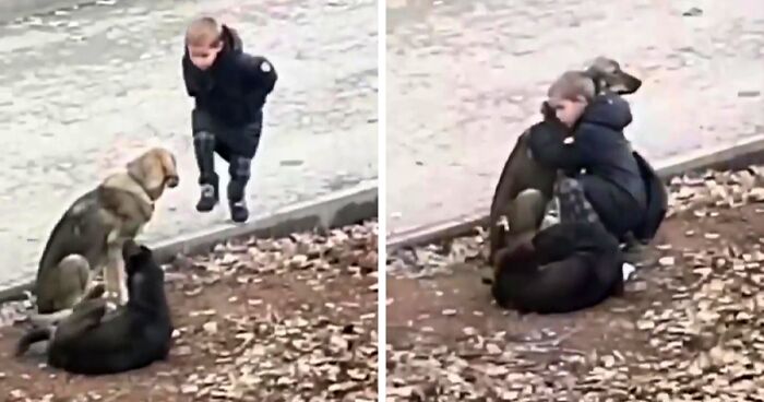 One gray day in Grozny, Chechnya, a boy named Ibrahim made the world a little bit brighter, showing us how unconditional a child’s love could be. In a video posted by a neighbor from a nearby residential building, the boy is seen warmly hugging and petting a pair of stray dogs on the sidewalk.