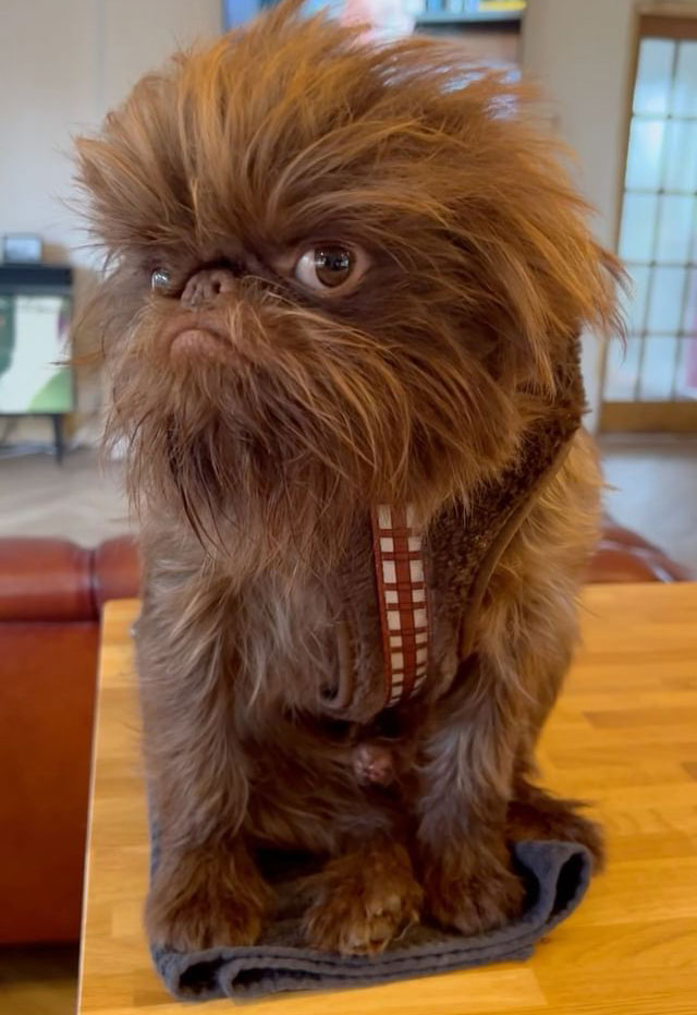 The first time he was called Chewbacca was when I took him for his vaccinations and a young man said ‘hey, it’s baby Chewbacca.’ It’s like that all the time now, we get stopped all the time on walks, people want to know what breed of dog he is and liken him to Chewbacca, Gremlin or the Grinch.