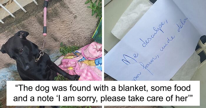 The dog was found by Lais Chesine Monfrinato with a blanket, some food and a note “I am sorry, please take care of her”