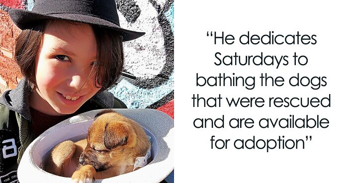 Thiago’s father Eduardo told Bored Panda: “The project idea was born at the end of 2020. It’s his idea too, where he intended to bathe the stray dogs, decorate them, perfume them and then return them to the street. So that people would see them more pleasantly and thus have more chances of adoption. He dedicates Saturdays to bathing the dogs that were rescued and are available for adoption, I take the photos because a photo of quality increases the chances of adoption of dogs. To date, his project has given 47 baths to stray animals.”