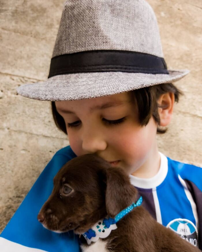 The boy’s dad Eduardo helps by taking pictures of the dogs to increase their chances of getting adopted