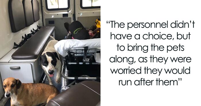 The ambulance personnel didn’t have a choice but to bring the pets along, as they were worried they would run after the ambulance and get injured