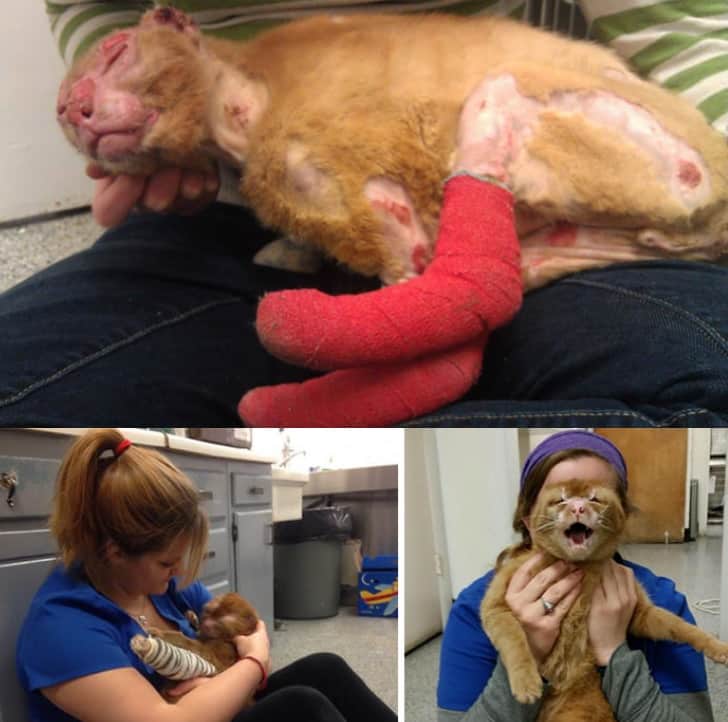 Russell, the cat, was rescued a few years ago after surviving a home fire. He suffered third-degree burns all over his body when he was taken to Animal Emergency Hospital and the Emergency Care Center in North Carolina. No one expected him to spend the night, but the vets did not surrender. Russell, despite numerous burns he made it impossible to live.