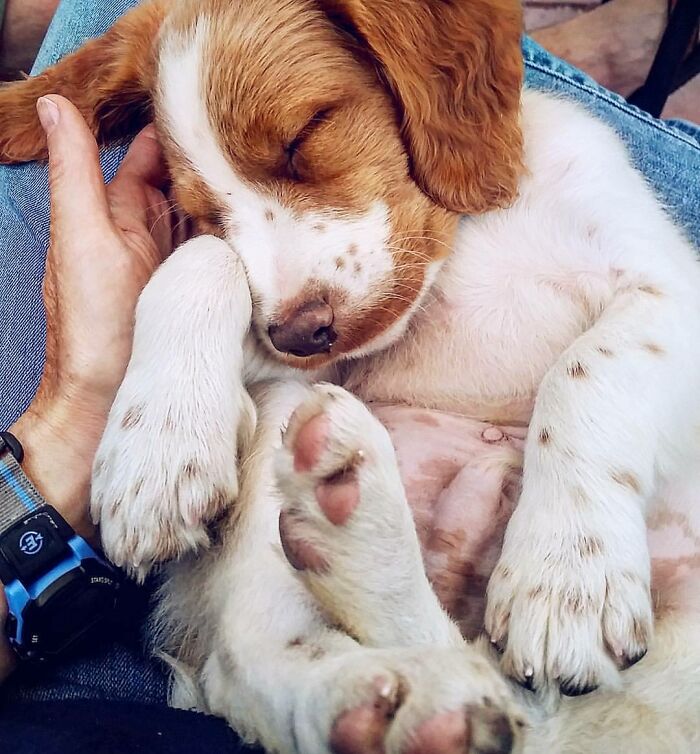 “He has a great life. He is loved, he has a mountain lifestyle with walks and hikes, sleeps on a couch and soft bed, plays with toys and is loved by all”