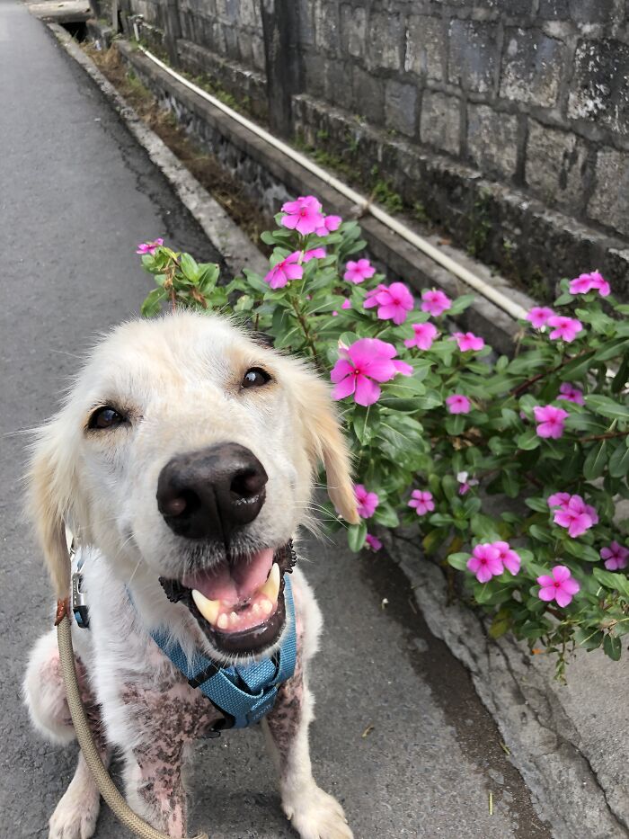 Slowly, but surely, his fur started to grow back and he started looking more and more like the gorgeous golden retriever he was born to be. However, Bobby’s skin condition never fully cleared up and today, he still suffers. This is because many western breed dogs don’t belong in the Bali climate. The climate here is lovely for humans, but for dogs, it can be too hot, harsh, and humid and can be a breeding ground for bacteria. The native Bali dog is a tough breed and they have adapted over the decades.