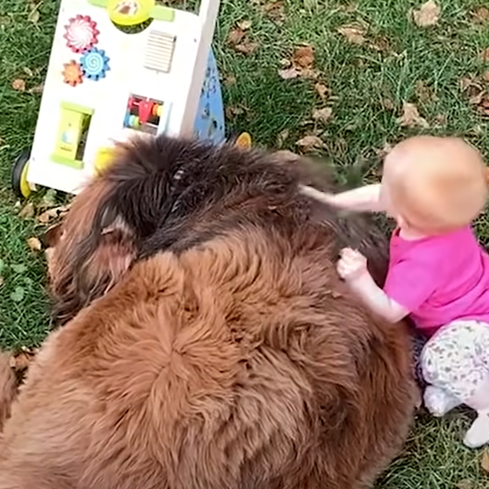 This goofy and funny dog made the family members smile all the time. Soon Abby found out that she was pregnant. So when they brought their little daughter, Annika, home, the intelligent dog understood that she was a new member of the family and he had to take care of her.