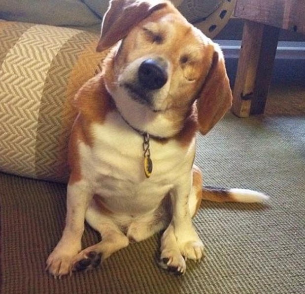 However, due to his blindness, the dog appears to be completely at peace.