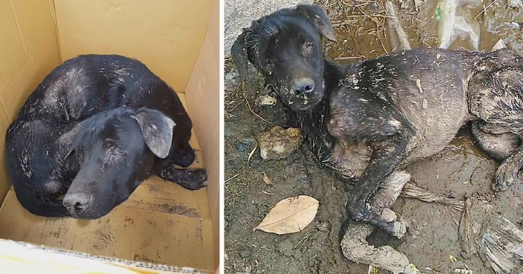 The miserable pup was found laying in the mud, no longer “deserving” of a roof over his head. He was dehydrated, hungry, and weak. This is where the dog opted to spend his final days. He had accepted that his life was ended since the one person he genuinely loved had abandoned him.