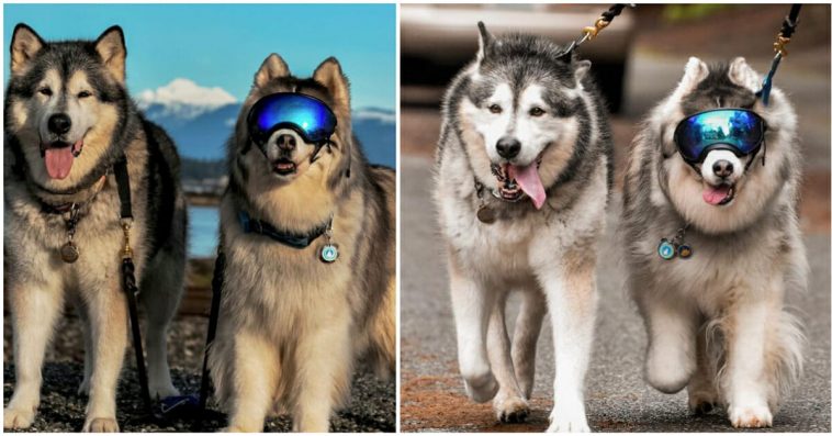 After going blind three years ago, this adorable, goggle-wearing husky has a new lease on life. An 11- year-old Siberian husky from Seattle named Sterling found a fur-ever friend: a 10-year-old Alaskan Malamute named Walker.