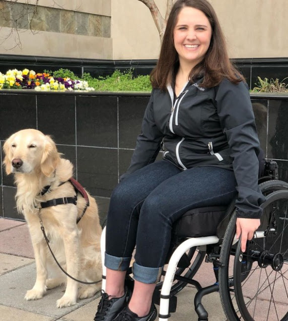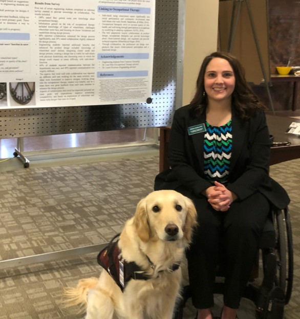 Griffin, Brittany Hawley’s devoted service dog, accompanied her to class every time. Griffin would go get her phone if she needed it. Griffin was present even while she was assisting patients as part of an internship.