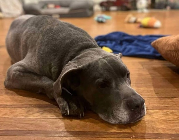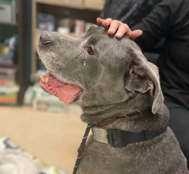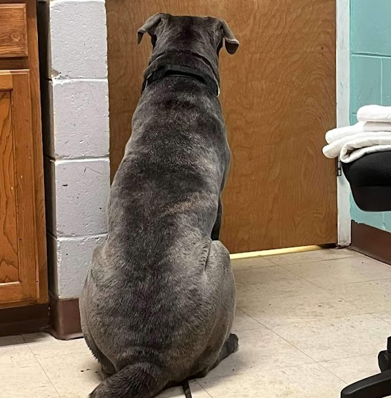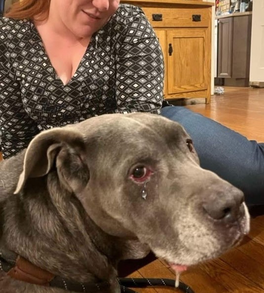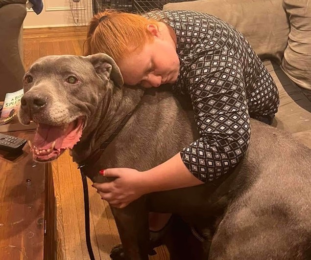 Blue Bear’s father couldn’t find a place to stay, so the senior mastiff wound up at Trenton Animals Rock. Blue Bear was perplexed as to why he was at a shelter and why his father wouldn’t stop sobbing. He barked and barked, terrifying the staff at the shelter until his father urged him to sit and Danielle Gletow approached him.