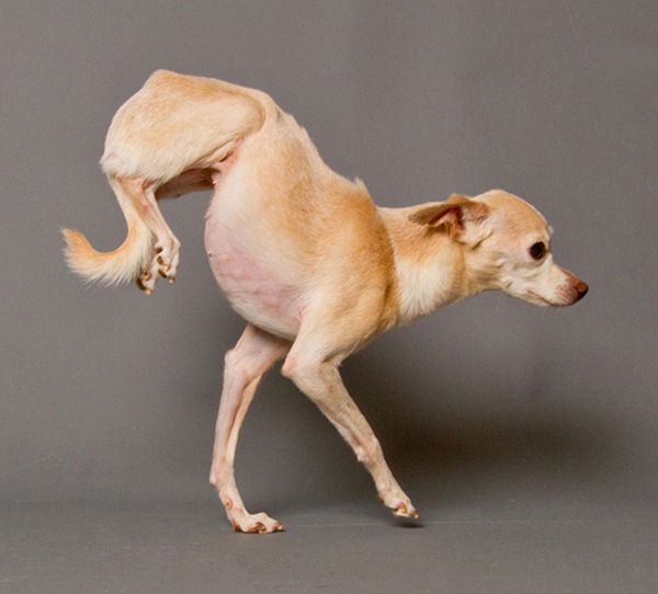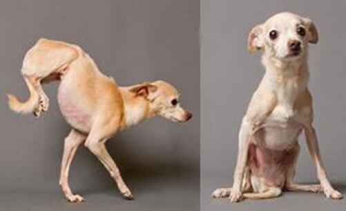 After examining the dog, LCDAS staff veterinarian, Suzanne Vazzana, determined that her back legs were paralyzed from an old pelvic injury. While the cause of her injury is unknown, she has been able to compensate for the loss of function in her back legs by lifting all of her body weight up onto her front legs in order to walk.