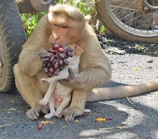 Finally, the wonderful story of the monkey adopting a puppy, protecting it from danger, and even allowing it to eat first has left the world in amazement. The two animals’ bond is a testament to the power of love and the importance of caring for one another, regardless of our differences.