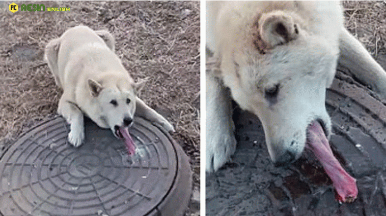 When a Good Samaritan rushed in to aid with the solution, the sobbing dog was desperately attempting to free its own frozen tongue.