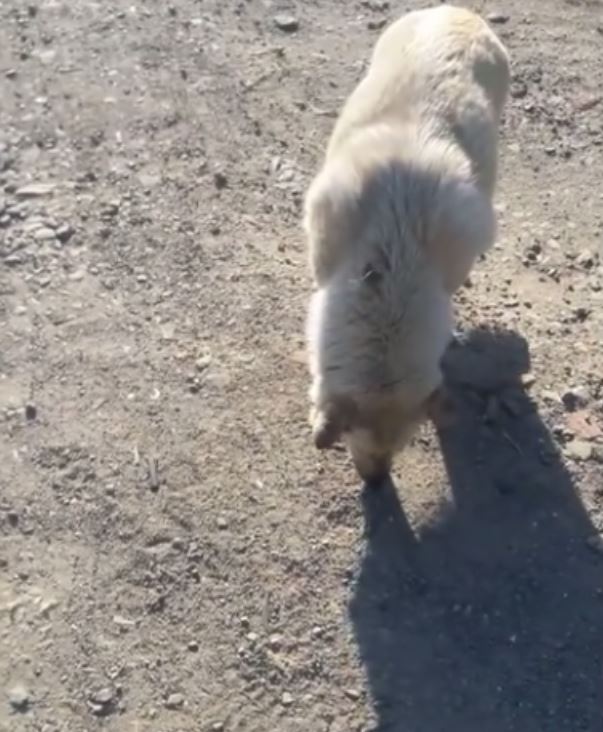The dog was eventually released and was glad to approach the guy for a stroking after his trauma. It is unclear whether the dog had an owner or was a stray, or whether it had any veterinary care.