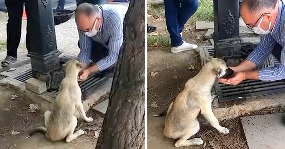 This was demonstrated by an unknown man in a video that circulated on social media, in which he can be seen directly from his hands giving water to a street dog.