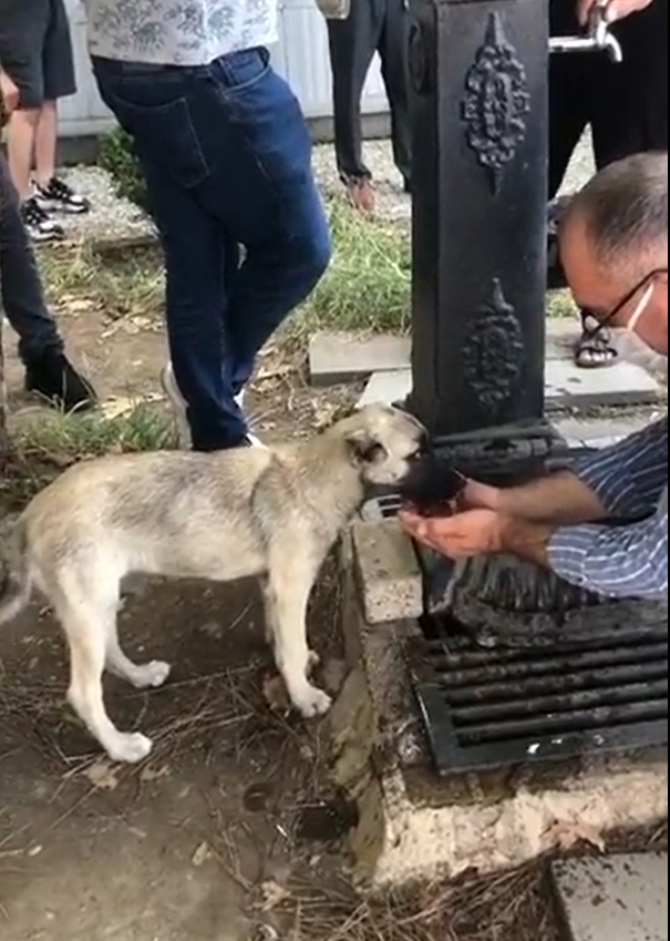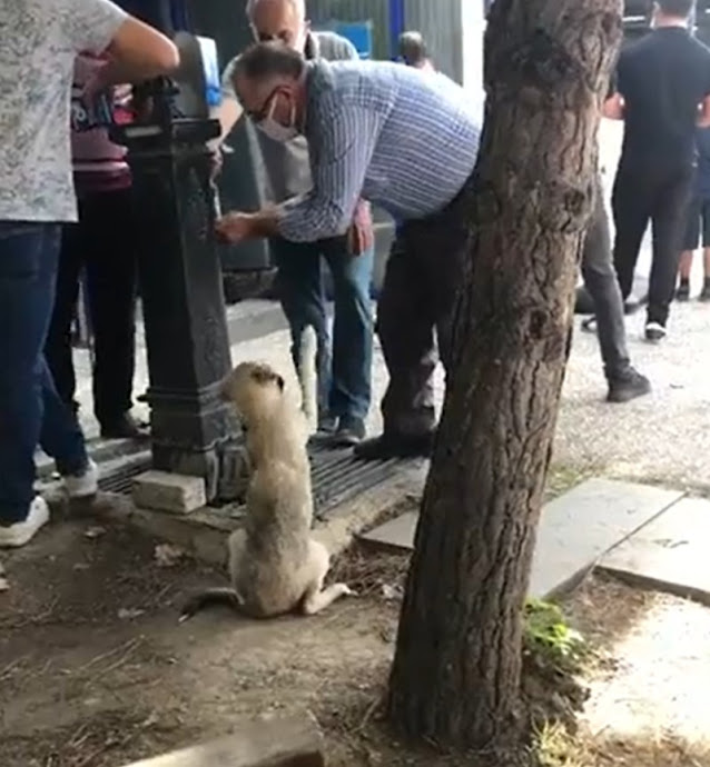 Tansu Yeen, a Turkish businessman, shared the video on his Twitter account, where the man can be seen gathering with more people and drawing water from a public tap to give to the dog, who appeared thirsty and begging with his front paws.
