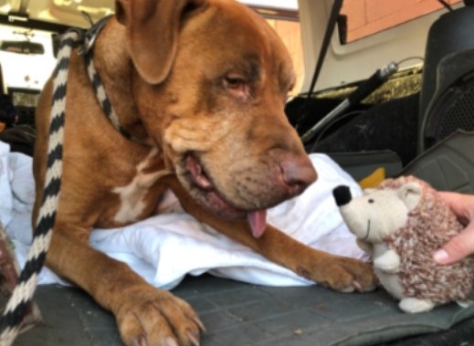 They gingerly transferred him to the car with a blanket, and the dog just looked up at them, appreciative for their assistance and pleased to be in an air-conditioned vehicle.