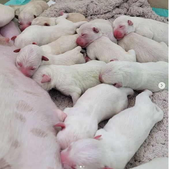 “Can you count how many puppies there are? It’s 14 – Natajuli gave birth to 14 adorable babies.”