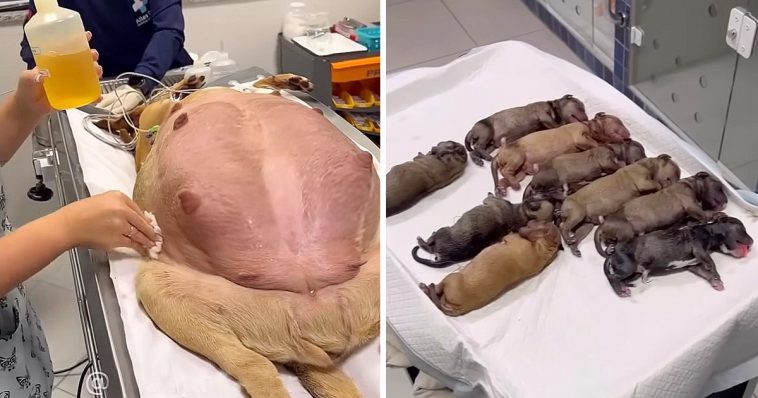 Undeterred, she persevered, unwilling to give up on her unborn offspring. Summoning the last remnants of her strength, she managed to reach a nearby veterinarian’s office. Recognizing the urgency of the situation, the vet and his team swiftly sprung into action, ushering the dog into a delivery room.