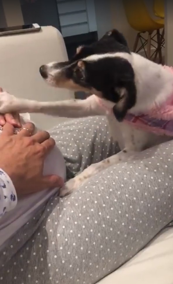 She hasn’t even been born yet and she’s already deeply loved by her furry sibling.