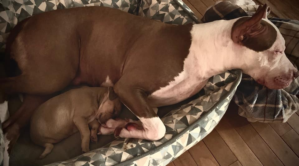 A shelter volunteer fell in love with her and decided to foster her. He has several additional dogs. Ariel felt at ease with him and developed close bonds with the other dogs.