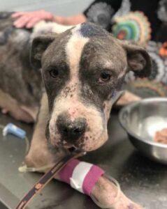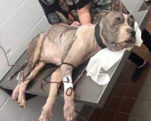 A pit bull on the point of death was rescued within an hour of his death. The animal is safe, but he almost didn’t make it.