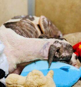 Truman is receiving much-needed care for his terrible ailment, which is a worm infestation. The poor dog was so worn out and therefore barely alive that when he was placed on the examination table, his head dangled over.