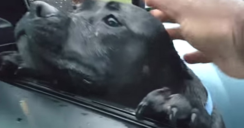 Well, this stray didn’t even have to see the food first before making himself right at home! The dog walks up to the stranger’s car, and the man asks “Do you want something to eat?”